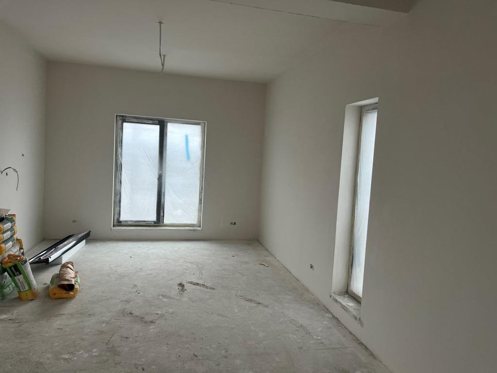 Structura din caramida porotherm cu izolatie exteriora, acoperis tip mediteranean metalic Bilka, interior tencuit si gletuit mecanizat, tamplarie exterioara REHAU.